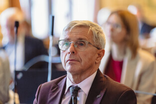 Gdańsk, ul Wały jagiellońskie. 70. sesja Rady Miasta Gdańska. Nz. radny Jan Perucki