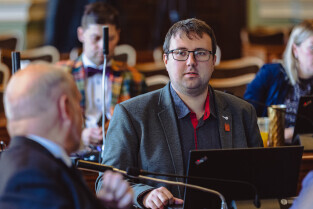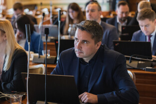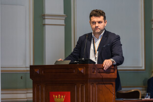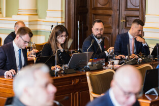 Gdańsk, ul Wały jagiellońskie. 70. sesja Rady Miasta Gdańska. Nz. radny Przemysław Malak