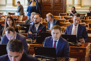 Gdańsk, ul Wały jagiellońskie. 70. sesja Rady Miasta Gdańska. Nz. Mateusz Skarbek - wiceprzewodniczący Rady Miasta
