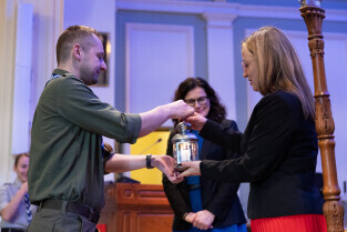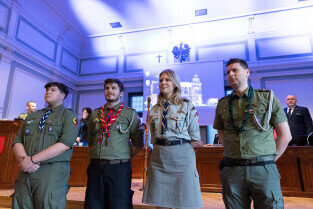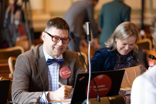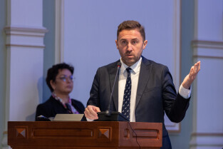 Gdańsk, ul. Wały Jagiellońskie. 71. sesja Rady Miasta Gdańska. Nz. radny Michał Hajduk