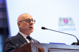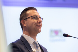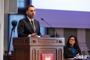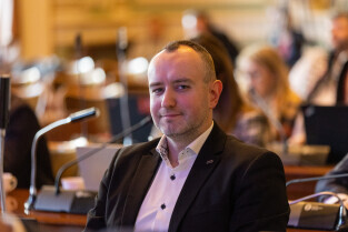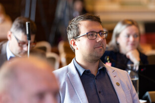 Gdańsk, ul. Wały Jagiellońskie. 71. sesja Rady Miasta Gdańska. Nz. radny Łukasz Bejm