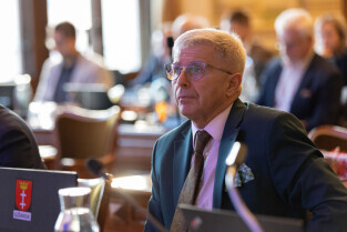 Gdańsk, ul. Wały Jagiellońskie. 71. sesja Rady Miasta Gdańska. Nz. radny Romuald Plewa