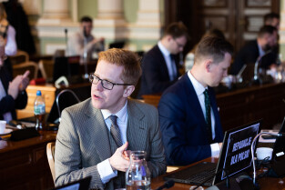 Gdańsk, ul. Wały Jagiellońskie. 71. sesja Rady Miasta Gdańska. Nz. radny Przemysław Malak