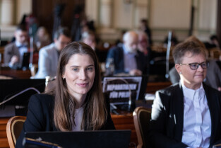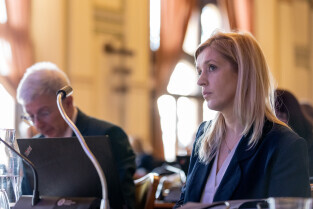 Gdańsk, ul. Wały Jagiellońskie. 71. sesja Rady Miasta Gdańska. Nz. radna Katarzyna Czerniewska