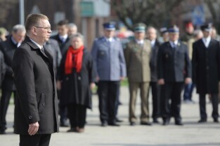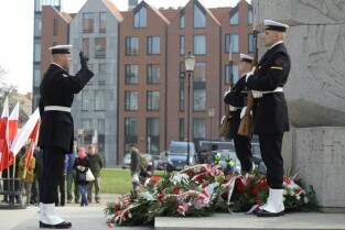 Gdańsk. Obchody 72. rocznicy powrotu Gdańska do Macierzy. Nz. Uroczystość pod Pomnikiem „Tym co za polskość Gdańska”.