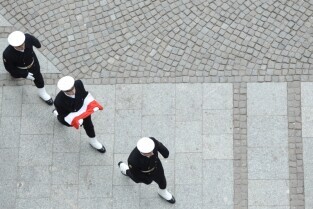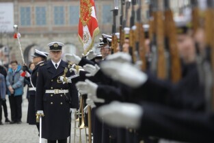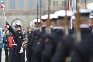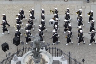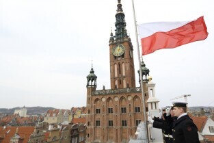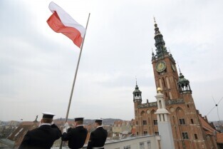 Gdańsk. Obchody 72. rocznicy powrotu Gdańska do Macierzy. Nz. Uroczystości przed Dworem Artusa.