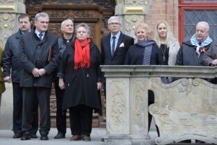 Gdańsk. Obchody 72. rocznicy powrotu Gdańska do Macierzy. Nz. Uroczystości przed Dworem Artusa.