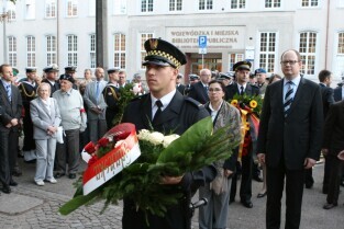 Uroczystość odbyła się we wtorek, 27 września 2011 r., o godzinie 17.00 przy pomniku Polskiego Państwa Podziemnego na Targu Rakowym w Gdańsku. Nz. Prezydent Gdańska Paweł Adamowicz oraz Radna Małgorzata Chmiel.