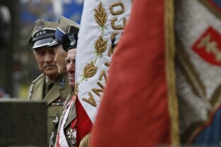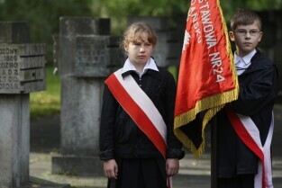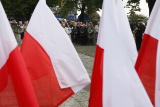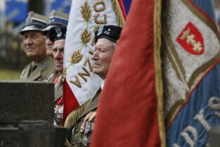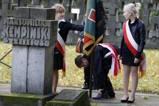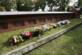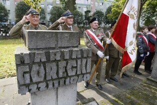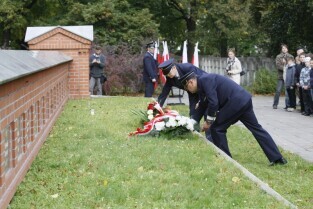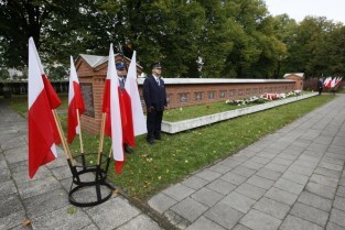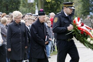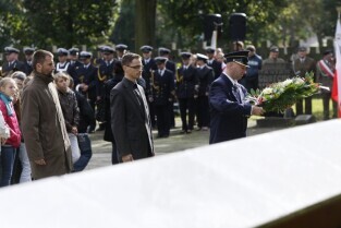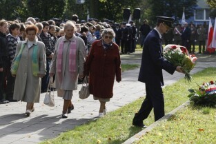 Gdańsk, Cmentarz - Pomnik Bohaterów 'Zaspa". Obchody 73. rocznicy rozstrzelania Obrońców Poczty Polskiej w Gdańsku.