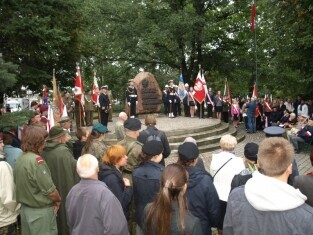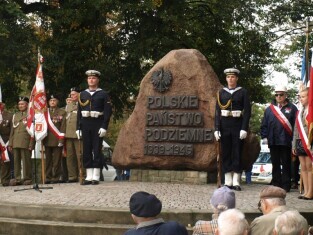 73. rocznica utworzenia Polskiego Państwa Podziemnego i Szarych Szeregów pod pomnikiem Polskiego Państwa Podziemnego na Targu Rakowym w Gdańsku