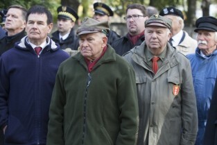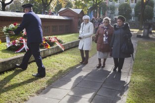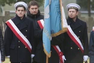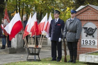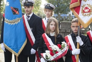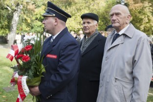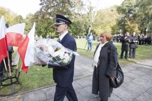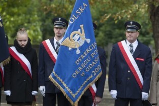 Gdańsk, Cmentarz - Pomnik Bohaterów 'Zaspa". Obchody 74. rocznicy rozstrzelania Obrońców Poczty Polskiej w Gdańsku.