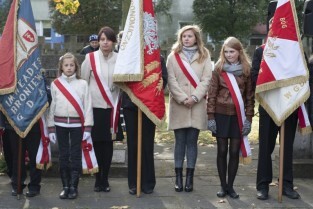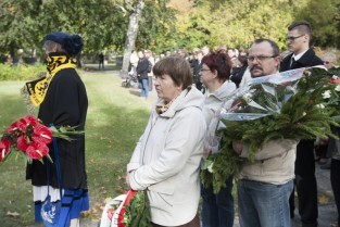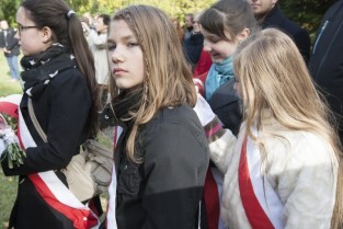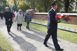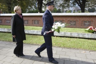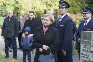 Gdańsk, Cmentarz - Pomnik Bohaterów 'Zaspa". Obchody 74. rocznicy rozstrzelania Obrońców Poczty Polskiej w Gdańsku. Nz. Posłanka na Sejm RP Anna Fotyga