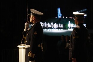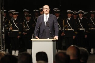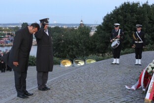 Gdańsk Westerplatte. Obchody 74. rocznicy wybuchu II Wojny Światowej z udziałem Prezesa Rady Ministrów Donalda Tuska, Prezydenta Gdańska Pawła Adamowicza i Metropolity Gdańskiego Abp Sławoja Leszka Głódzia.