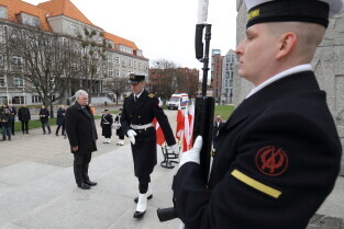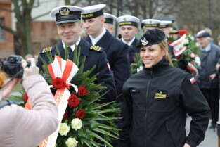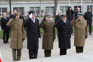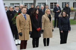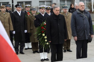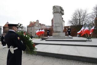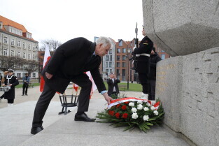 Gdańsk. Uroczystości 74. rocznicy powrotu Gdańska do Macierzy. Składanie wieńców pod pomnikiem „Tym Co Za Polskość Gdańska”.