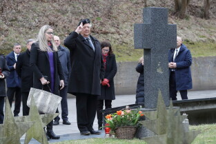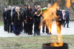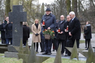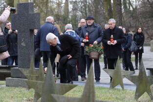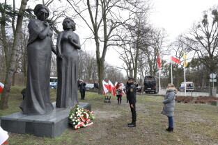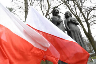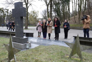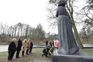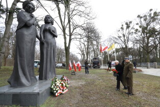Gdańsk. Uroczystości 74. rocznicy powrotu Gdańska do Macierzy. Składanie kwiatów przy „Pomniku Matki Polki i Rosjanki” na Cmentarzu Wojennym Żołnierzy Radziecki w Gdańsku.