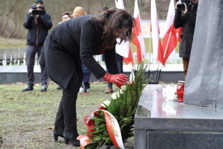 Gdańsk. Uroczystości 74. rocznicy powrotu Gdańska do Macierzy. Składanie wieńców pod pomnikiem „Tym Co Za Polskość Gdańska”. Nz. Przewodnicząca Rady Miasta Agnieszka Owczarczak.