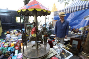 Gdańsk. 758 Jarmark Św. Dominika rozpoczęty. Nz. Sprzedawca Janusz Ożarków.