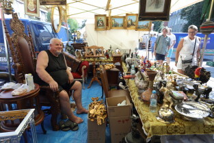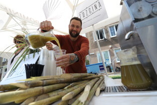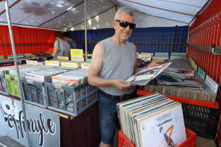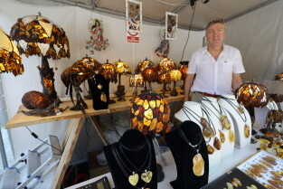 Gdańsk. 758 Jarmark Św. Dominika rozpoczęty. Nz. Sprzedawca Pan Leszek z Płońska.