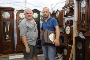 Gdańsk. 758 Jarmark Św. Dominika rozpoczęty. Nz. Sprzedawcy Marek i Eugeniusz.