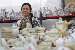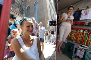 Gdańsk. 758 Jarmark Św. Dominika rozpoczęty. Nz. Sprzedawca Pani Anna.