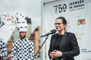 Gdańsk. 759. Jarmark św. Dominika - konferencja prasowa na Ołowiance. Nz. Prezydent Gdańska Aleksandra Dulkiewicz