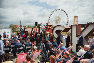 Gdańsk. 759. Jarmark św. Dominika - konferencja prasowa na Ołowiance. Nz. Członek Zarządu Woj. Pomorskiego Piotr Orłowski