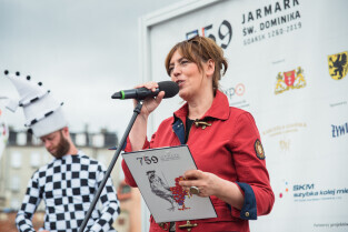 Gdańsk. 759. Jarmark św. Dominika - konferencja prasowa na Ołowiance. Nz. Joanna Czauderna-Szreter