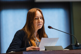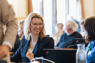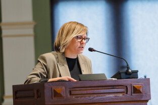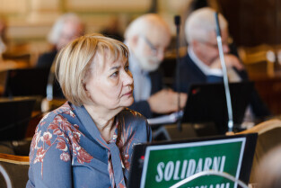 Gdańsk, ul. Wały Jagiellońskie. 75. Sesja Rady Miasta Gdańska. Nz. radna Anna Golędzinowska