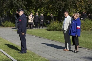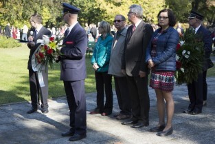 Gdańsk Zaspa. Obchody 75. rocznicy rozstrzelania Obrońców Poczty Polskiej w Gdańsku. Nz. po prawej Prezydent Gdańska Paweł Adamowicz