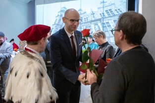 Gdańsk. W auli Akademii Sztuk Pięknych w Gdańsku odbyło się święto uczelni związane z 77 rocznicą jej powstania. Nz. Mariusz Łuczyk - Wicewojewoda Pomorski .