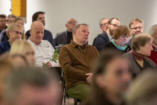 Gdańsk. W auli Akademii Sztuk Pięknych w Gdańsku odbyło się święto uczelni związane z 77 rocznicą jej powstania. Nz. Wysąpienie Piotra Kryszewskiego, zastępcy Prezydenta ds. usług komunalnych.