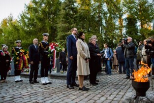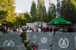 obchody 77 rocznicy powstania Polskiego Państwa Podziemnego w kwaterze AK Cmentarza Łostowickiego. Składanie wieńców.