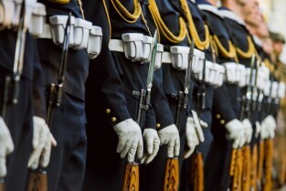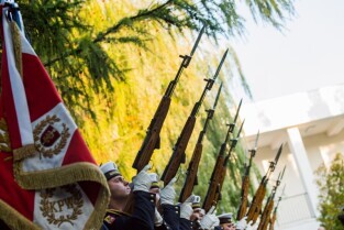 Obchody 77 rocznicy powstania Polskiego Państwa Podziemnego w kwaterze AK Cmentarza Łostowickiego. Salwa honorowa.