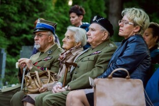 Obchody 77 rocznicy powstania Polskiego Państwa Podziemnego w kwaterze AK Cmentarza Łostowickiego. składanie wieńców.