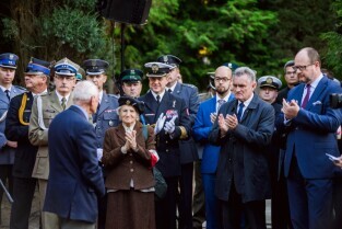 Obchody 77 rocznicy powstania Polskiego Państwa Podziemnego w kwaterze AK Cmentarza Łostowickiego. Nz Jerzy Grzywacz.