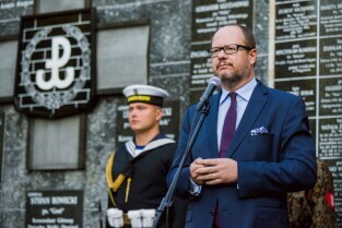Obchody 77 rocznicy powstania Polskiego Państwa Podziemnego w kwaterze AK Cmentarza Łostowickiego. Nz Prezydent Paweł Adamowicz.