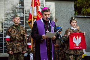 Obchody 77 rocznicy powstania Polskiego Państwa Podziemnego w kwaterze AK Cmentarza Łostowickiego. Nz Biskup Zbigniew Zieliński.