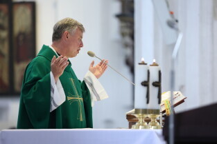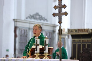 Gdańsk.77. rocznica wybuchu Powstania Warszawskiego. Msza św. w intencji ofiar i weteranów Powstania. Nz. Ks. Ireneusz Bradtke.