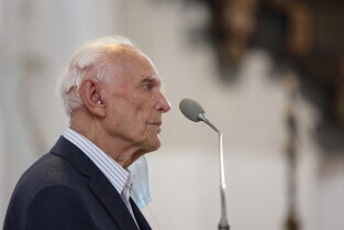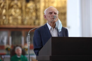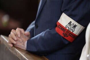 Gdańsk.77. rocznica wybuchu Powstania Warszawskiego. Msza św. w intencji ofiar i weteranów Powstania. Nz. Jerzy Grzywacz – gdyński harcerz z Szarych Szeregów, pseudonim „Tapir”. Żołnierz Armii Krajowej, członek drużyny Lucjana Cylkowskiego, uczestniczył w Powstaniu Warszawskim.