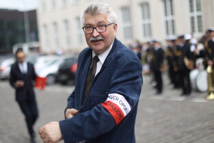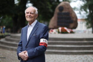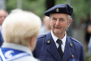 Gdańsk.77. rocznica wybuchu Powstania Warszawskiego. Uroczystość na Targu Rakowym, przy obelisku upamiętniającym Polskie Państwo Podziemne. Nz. Jerzy Grzywacz – gdyński harcerz z Szarych Szeregów, pseudonim „Tapir”. Żołnierz Armii Krajowej, członek drużyny Lucjana Cylkowskiego, uczestniczył w Powstaniu Warszawskim.