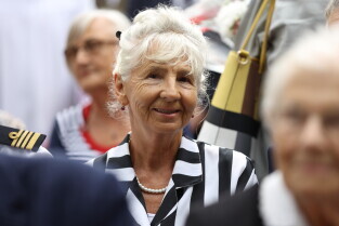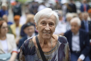 Gdańsk.77. rocznica wybuchu Powstania Warszawskiego. Uroczystość na Targu Rakowym, przy obelisku upamiętniającym Polskie Państwo Podziemne. Nz. Teresa Mickiewicz-Kozakiewicz Powstaniec Warszawski.