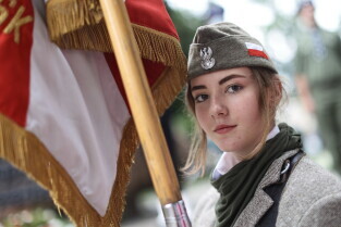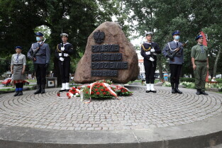 Gdańsk.77. rocznica wybuchu Powstania Warszawskiego. Uroczystość na Targu Rakowym, przy obelisku upamiętniającym Polskie Państwo Podziemne.