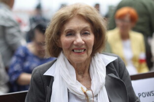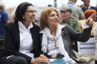Gdańsk.77. rocznica wybuchu Powstania Warszawskiego. Uroczystość na Targu Rakowym, przy obelisku upamiętniającym Polskie Państwo Podziemne. Nz. Aktorka Krystyna Łubieńska.