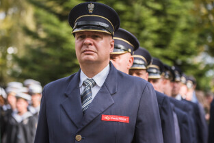 Gdańsk, cmentarz pocztowców na Zaspie. 79. rocznica rozstrzelania Obrońców Poczty Polskiej w Gdańsku. Nz. Paweł Skoworotko - Członek Zarządu Poczty Polskiej S.A.