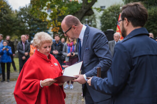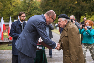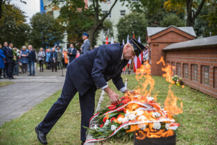 Gdańsk, cmentarz pocztowców na Zaspie. 79. rocznica rozstrzelania Obrońców Poczty Polskiej w Gdańsku