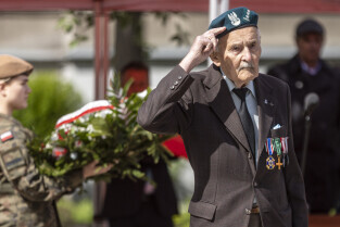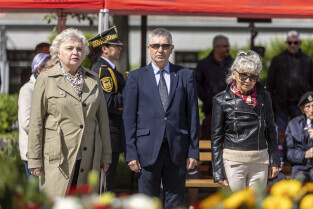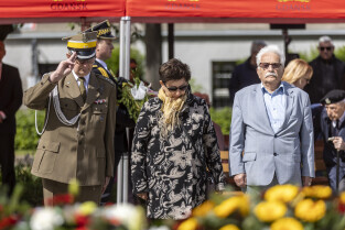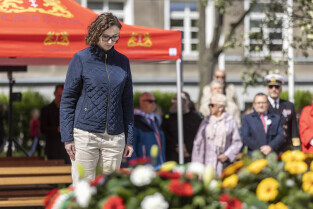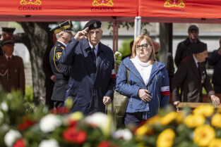 Gdańsk. Pod pomnikiem „Tym co za polskość Gdańska” odbyły się obchody 79 rocznicy zakończenia II wojny światowej. W uroczystości udział wzięli między innymi Prezydent Aleksandra Dulkiewicz, Przewodnicząca Rady Miasta Agnieszka Owczarczak, radni Piotr Dzik, Łukasz Bejm i Maksymilian Kieturakis
