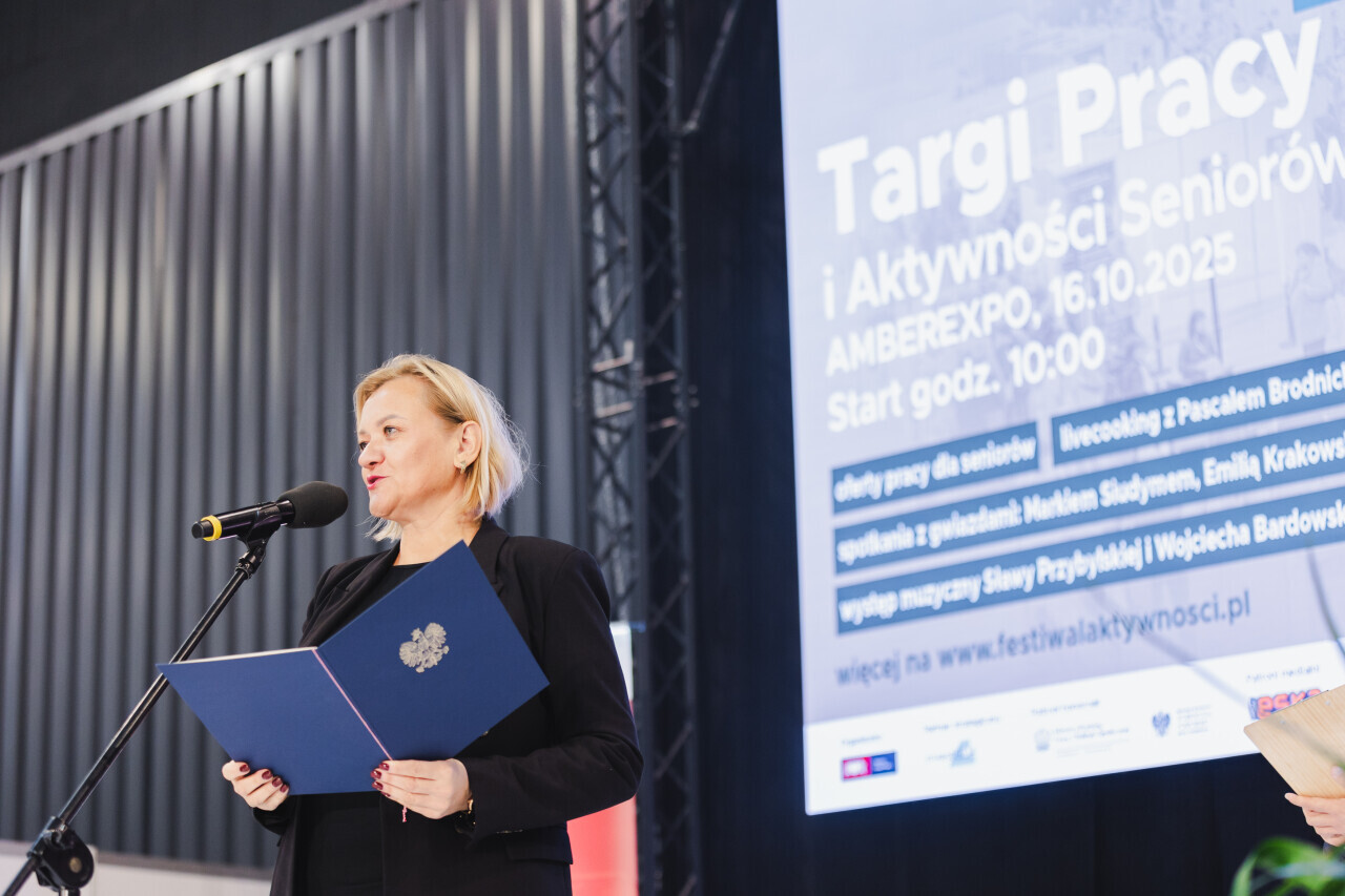 Gdańsk, Amber Expo. 7. Targi Pracy i Aktywności Seniorów. Nz. Wicewojewoda pomorska Anna Olkowska-Jacyno