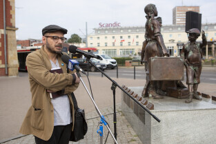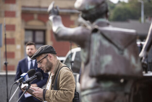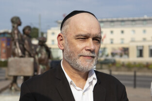 80. rocznica ewakuacji ostatniej grupy żydowskich dzieci w ramach akcji Kindertransportów. Gdańsk, Dworzec PKP. Nz. członek Zarządu Gminy Wyznaniowej Żydowskiej w Gdańsku Jakub Skrzypczak