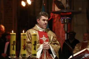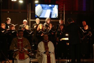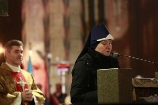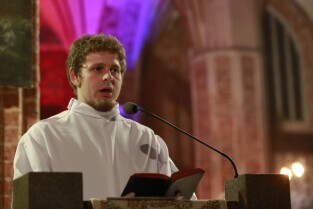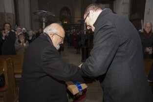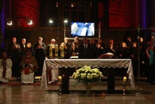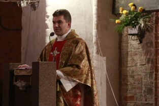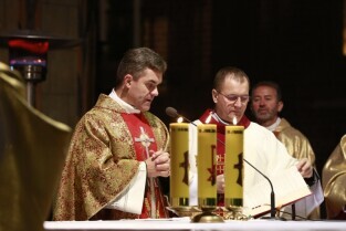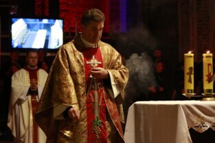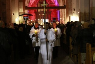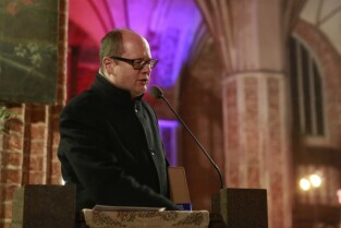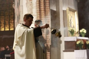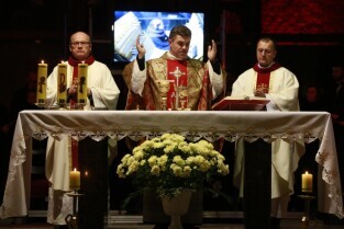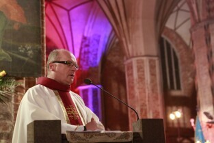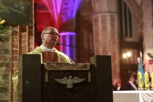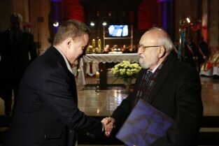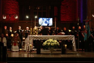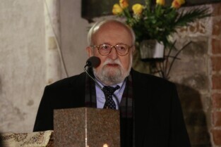 Gdańsk, kościół św. Katarzyny. Uroczystość odpustowa św. Katarzyny Aleksandryjskiej, którą uświetniło wykonanie "Missa Brevis" Krzysztofa Pendereckiego w obecności kompozytora wraz z małżonką z okazji 81. Rocznicy Jego urodzin.