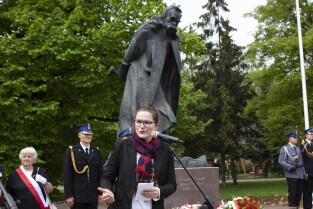 Gdańsk Strzyża. Uroczystości 83. rocznicy śmierci marszałka Józefa Piłsudskiego. Nz. Z-ca Prezydenta Gdańska Aleksandra Dulkiewicz